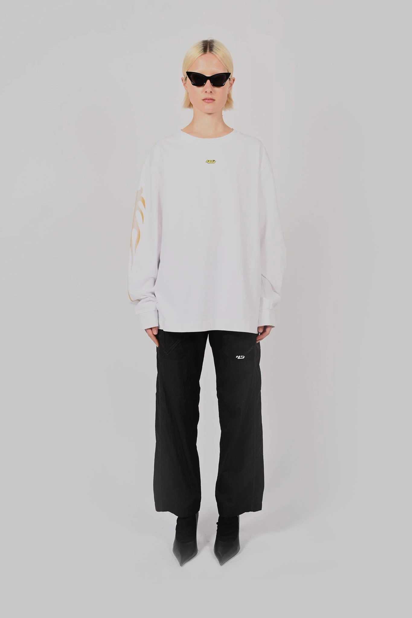 Made of a 315gsm high twist cotton jersey, the LS Factory Tee is a classic everyday oversize cut with ‘Tribal Flame’ print on the sleeves and high thread count embroidery on the front.