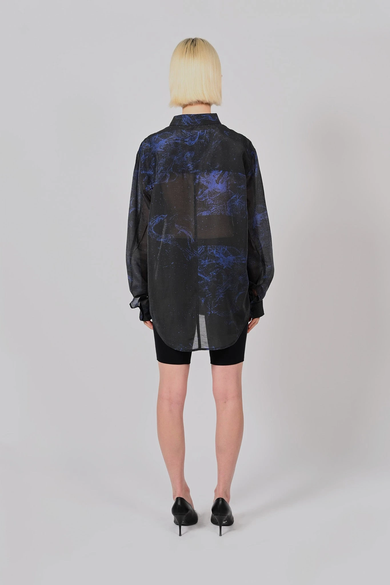 A lightweight sheer long sleeve summary up shirt, with the perfect amount of transparency to wear layered or on its own.