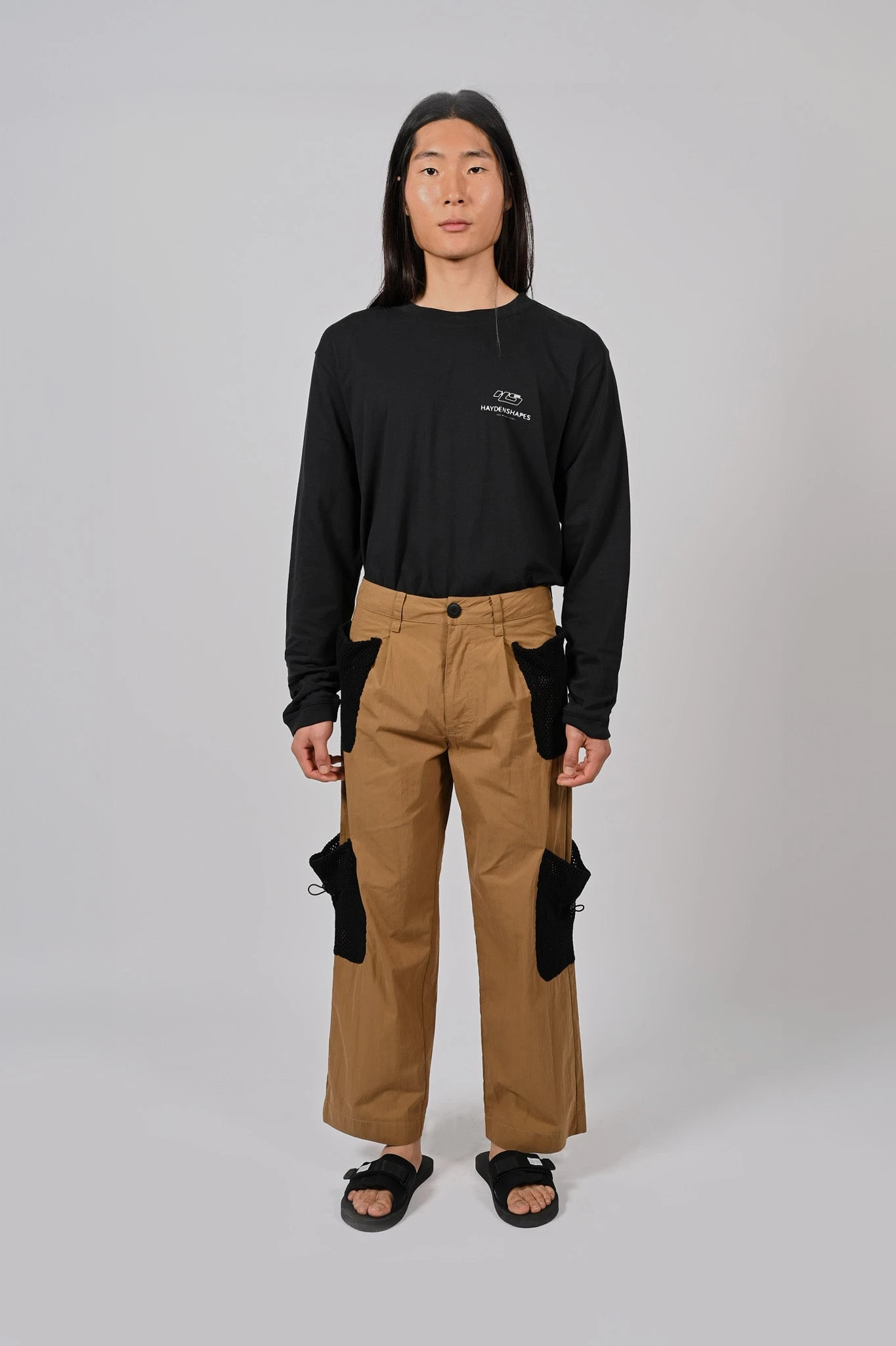 Made in a soft and comfortable poly nylon with a contrast mesh pocket detail, this straight cut semi wide leg style features summary fly entry and ultra deep internal side pockets.