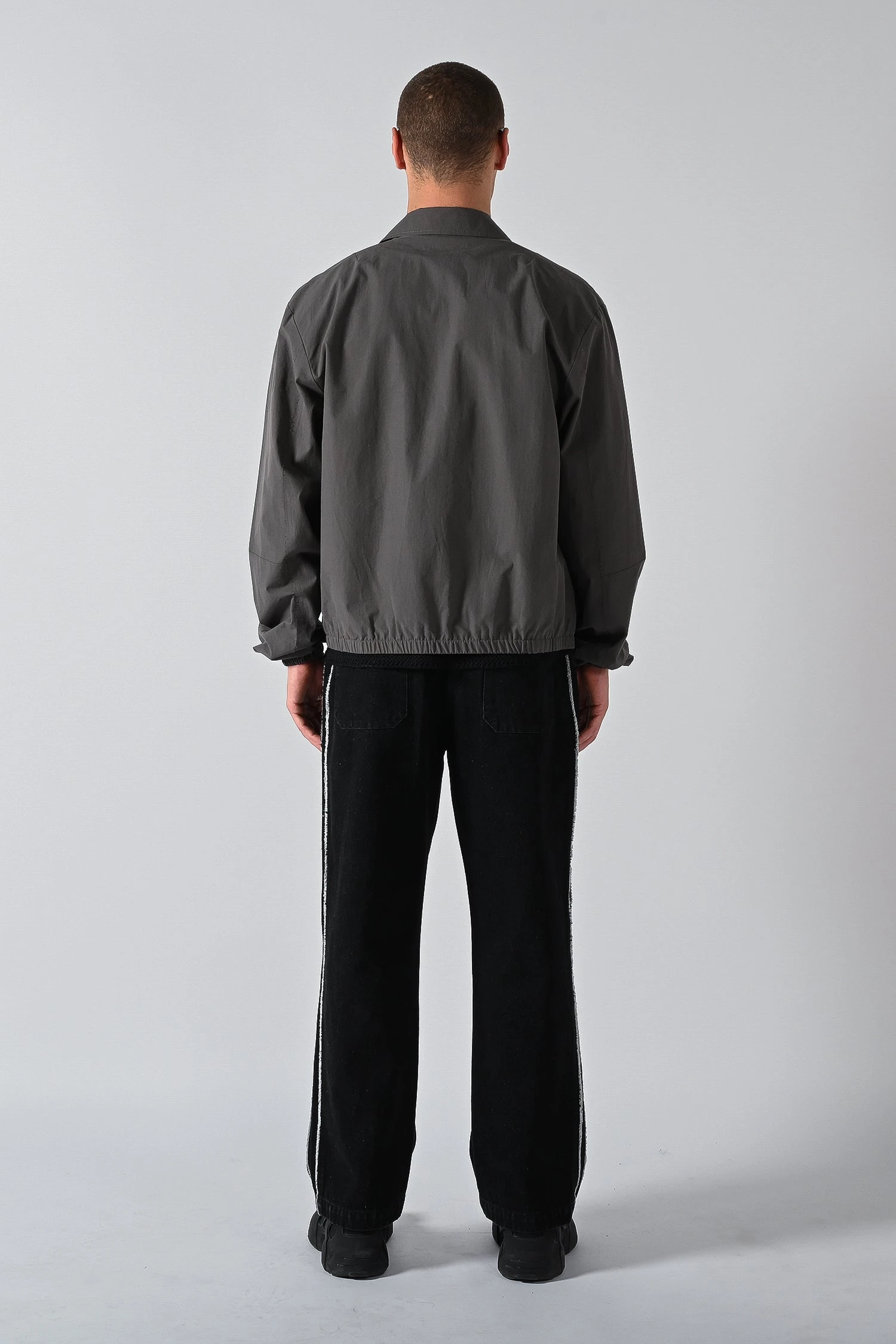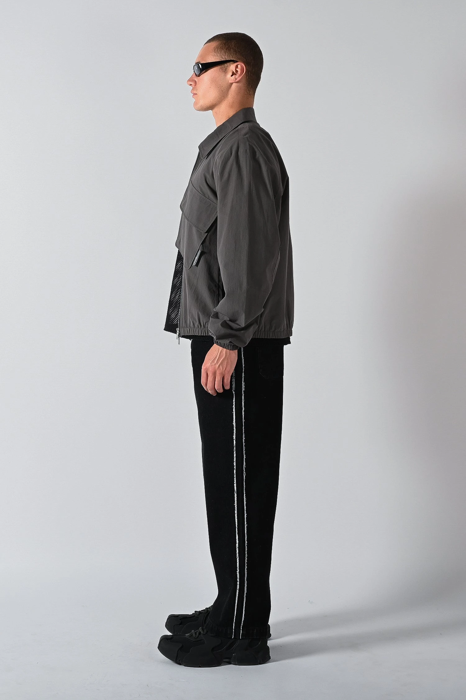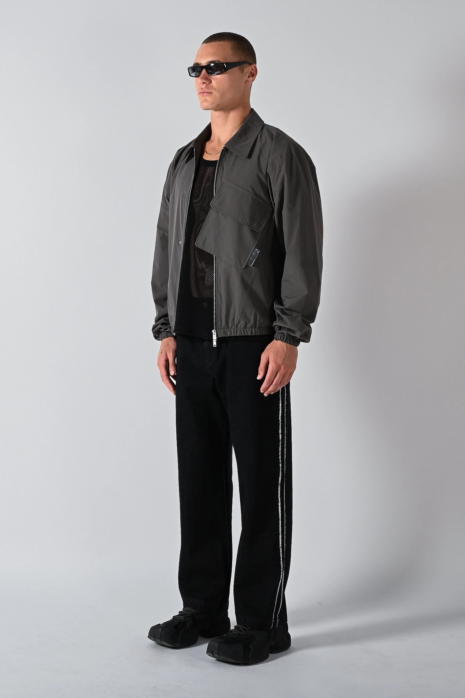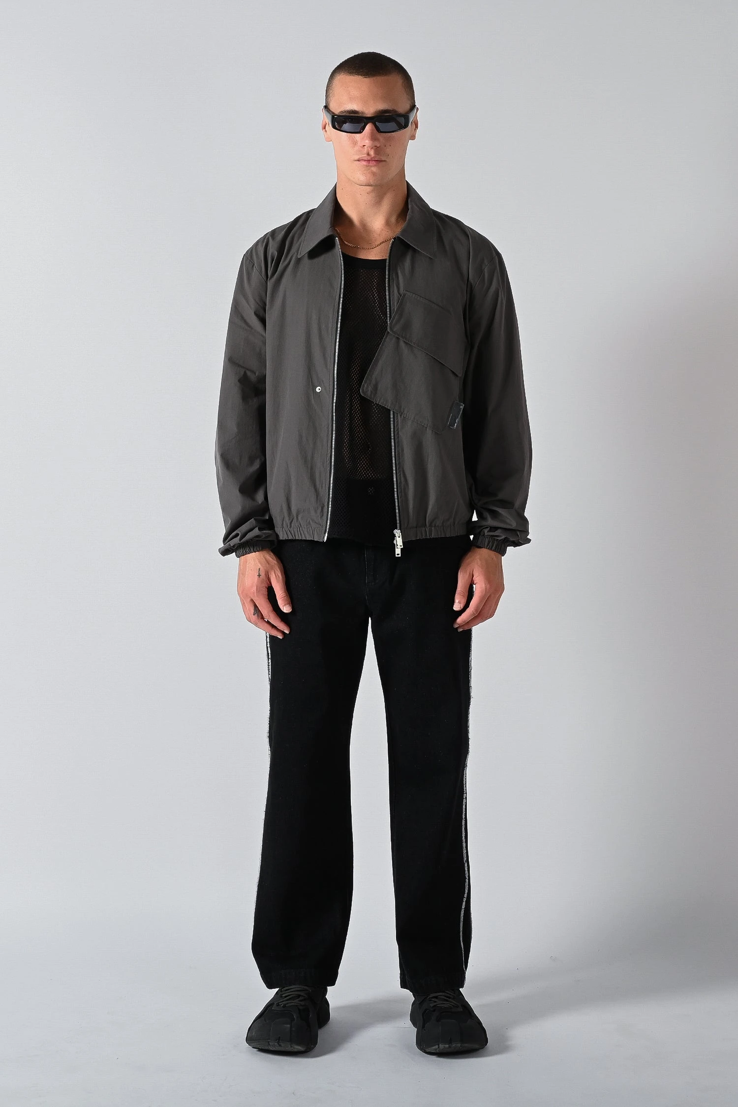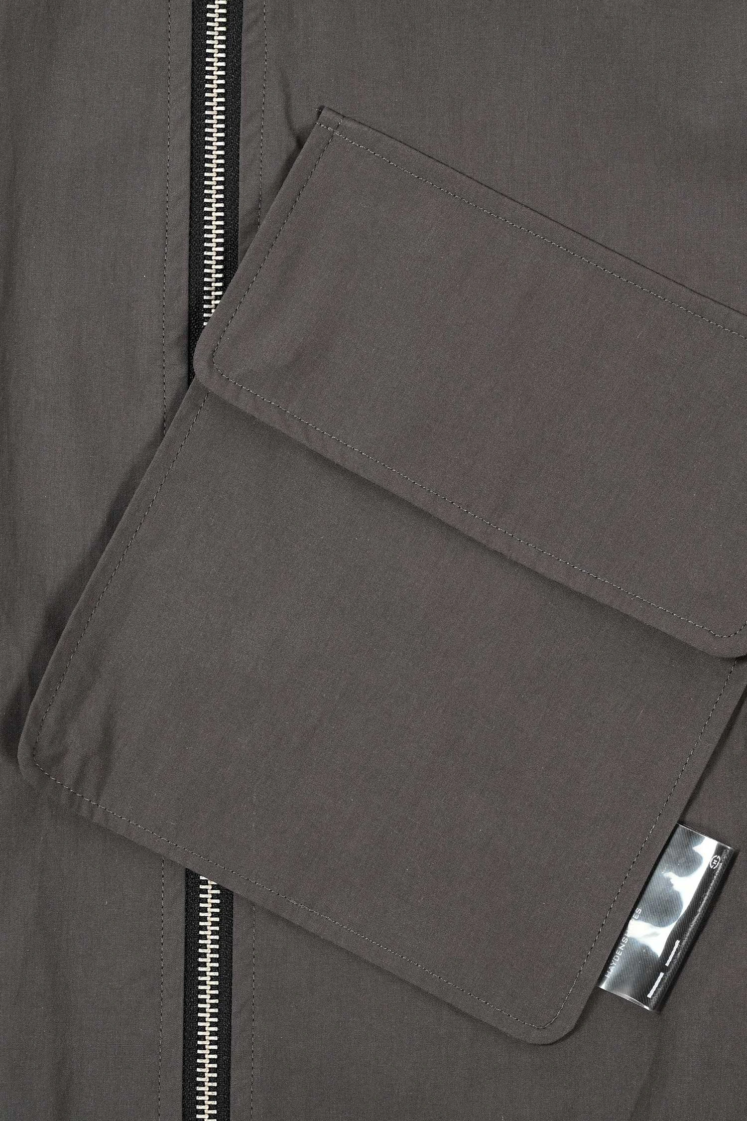 Made from peached poly nylon fabric with a boxy silhouette and drop shoulder design. The Offset Shell Jacket features an oversized front pockets that sits offset across the front centre zip entry. Available in two colours, Tarmac and Mirage.