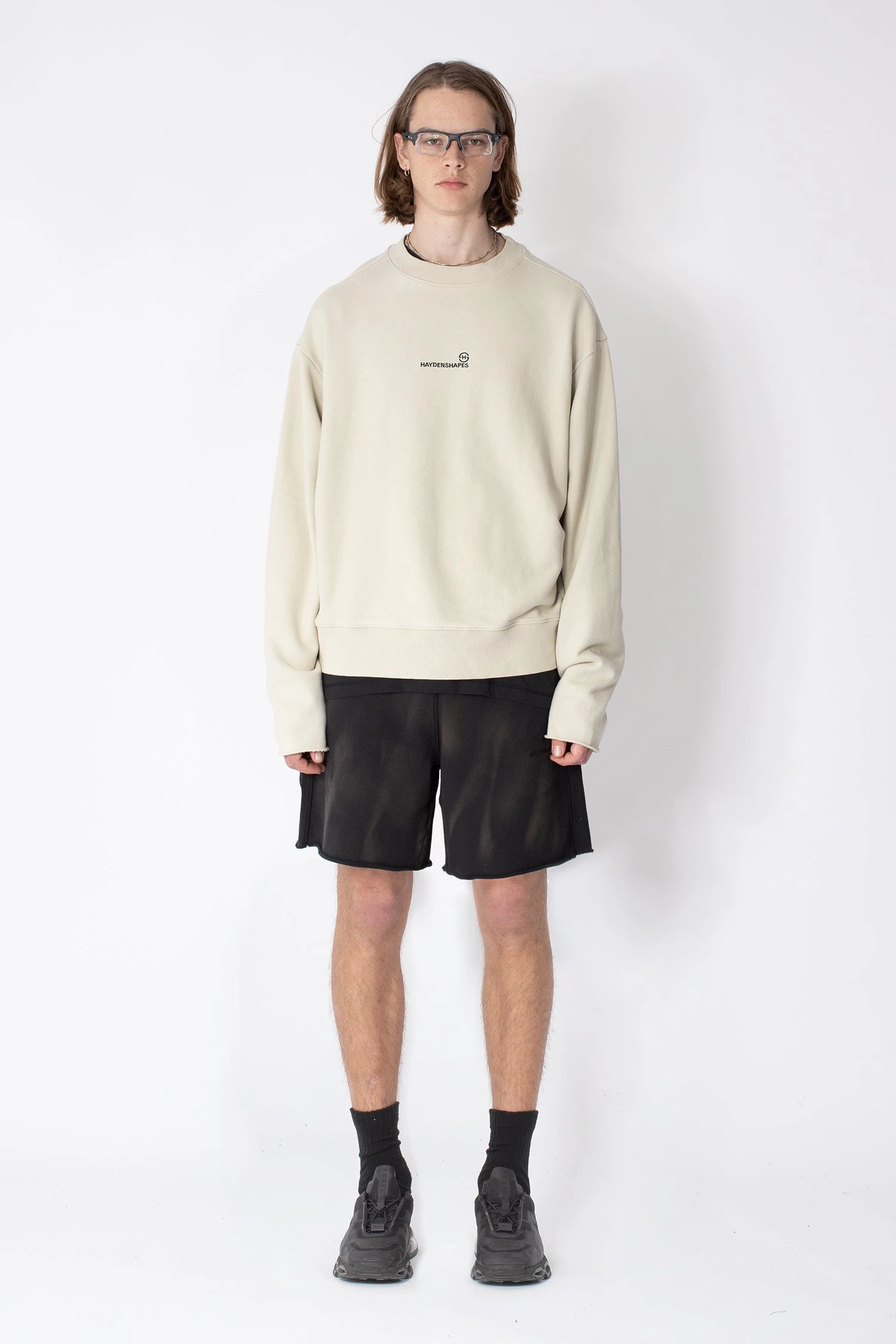 Made of a 400gsm semi brushed french terry cotton, the Resin Crew key features include a signature and contemporary box shape and drop shoulder silhouette with cover stitched inverted fabric side panels, raw edge cut-off sleeves, a woven brand label with a PVC outer layer and centered embroidered logo.