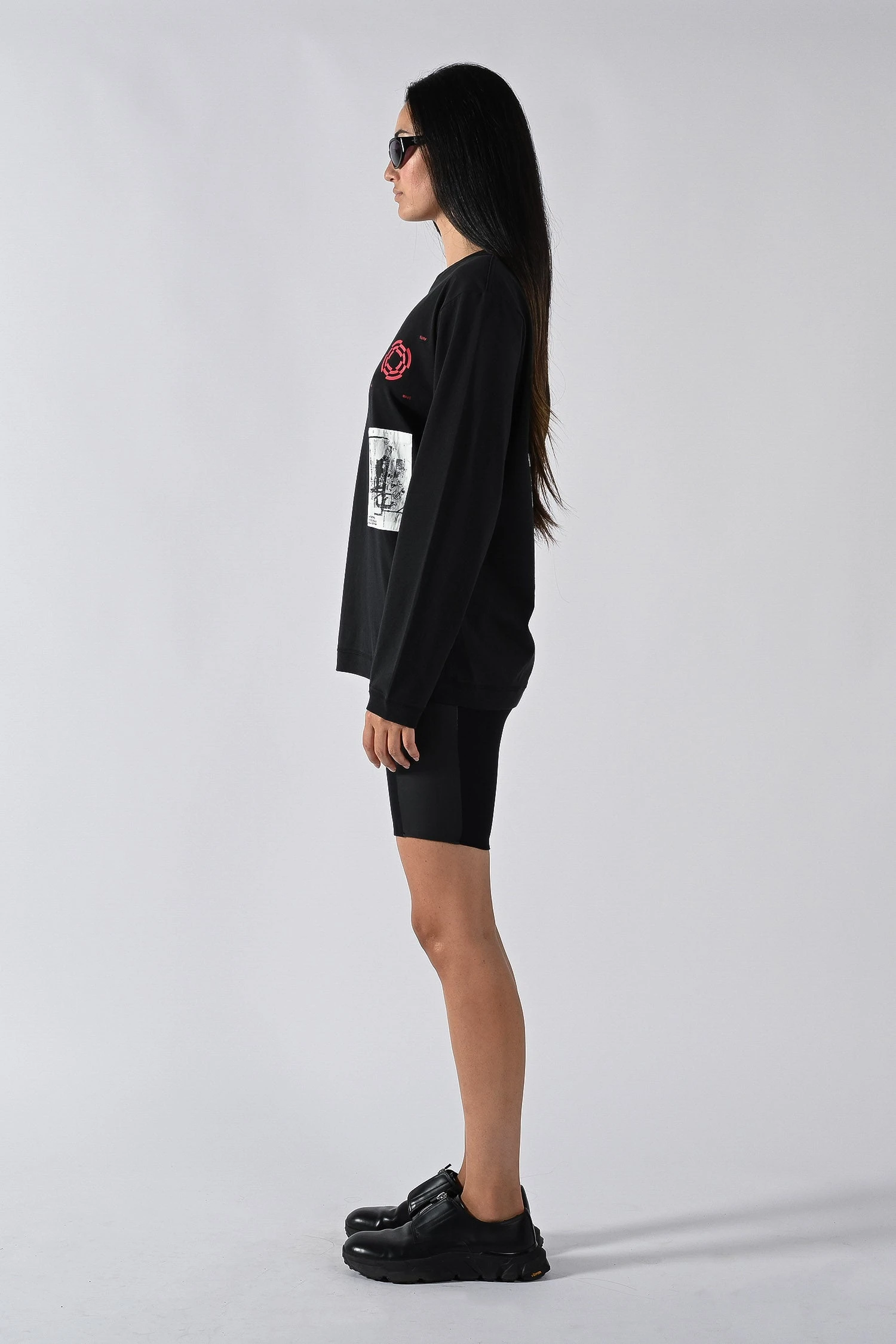 Made of a 220gsm high twist cotton jersey, the Shapers Tee is a classic everyday regular cut with oversize graphics on the black and a blend of print and sewn on fabric patch art detailing on the front.